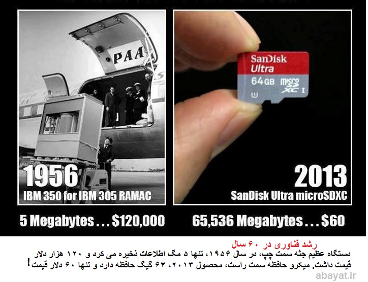 دستگاه عظیم جثه سمت چپ، در سال 1956، تنها 5 مگ اطلاعات ذخیره می کرد و